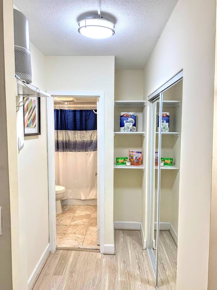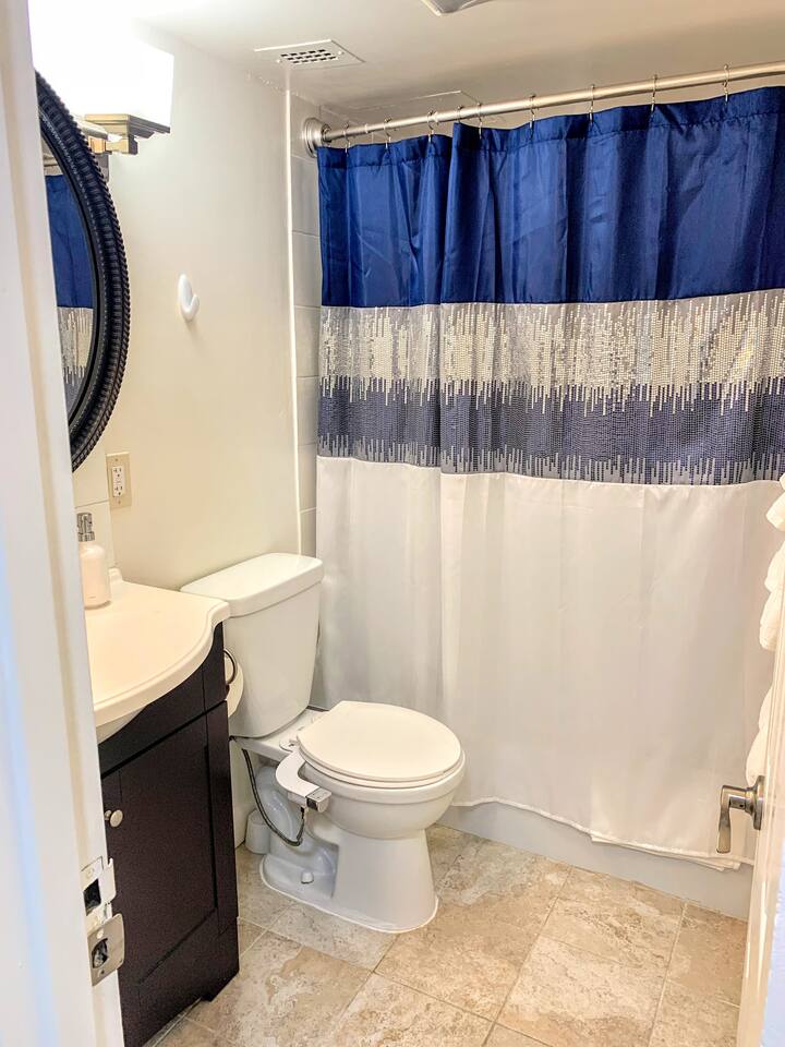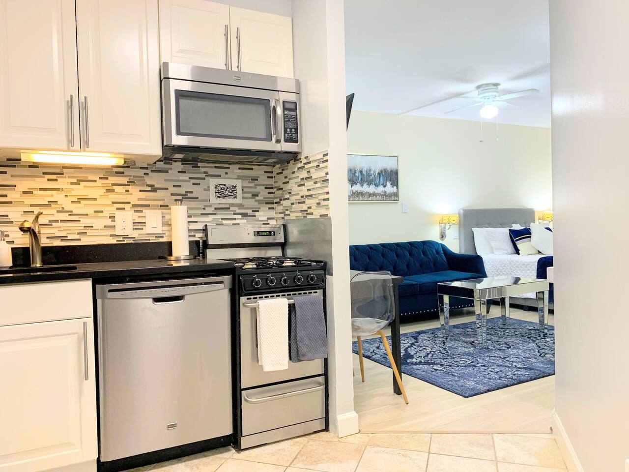 Relax and make yourself at home in this beautiful, spacious studio! Soothing blue tones, hardwood floors, a renovated kitchen, and modern decor have been carefully curated add a modern touch to your stay. If you're working or studying remotely, this is the perfect space for you! The apartment is furnished with a modern desk, high-speed internet, and everything you need to focus and be productive. When you're ready to relax, kick back on a plush, comfortable sofa and turn on your favorite show on the Smart TV. Finally, finish out your week with shopping trip in Downtown Bethesda, a meal or a drink at one of the many local restaurants and bars, or a Metro ride into the heart of DC for sightseeing and entertainment!